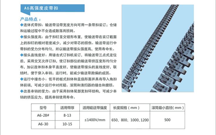 主營產(chǎn)品:運輸皮帶扣,礦用皮帶扣,強力皮帶扣手拉式訂扣機,高強度訂扣機錘式訂扣機